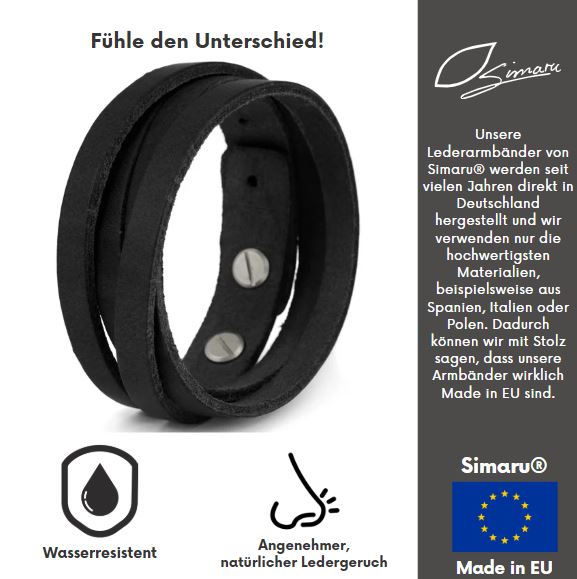 DEUTSCHE SPITZENQUALITÄT, DIE DU SPÜREN KANNST: Das Simaru-Herrenarmband wird vollständig in Deutschland aus hochwertigen Materialien produziert. Robust und zugleich angenehm zu tragen, wirst du von der Qualität begeistert sein!