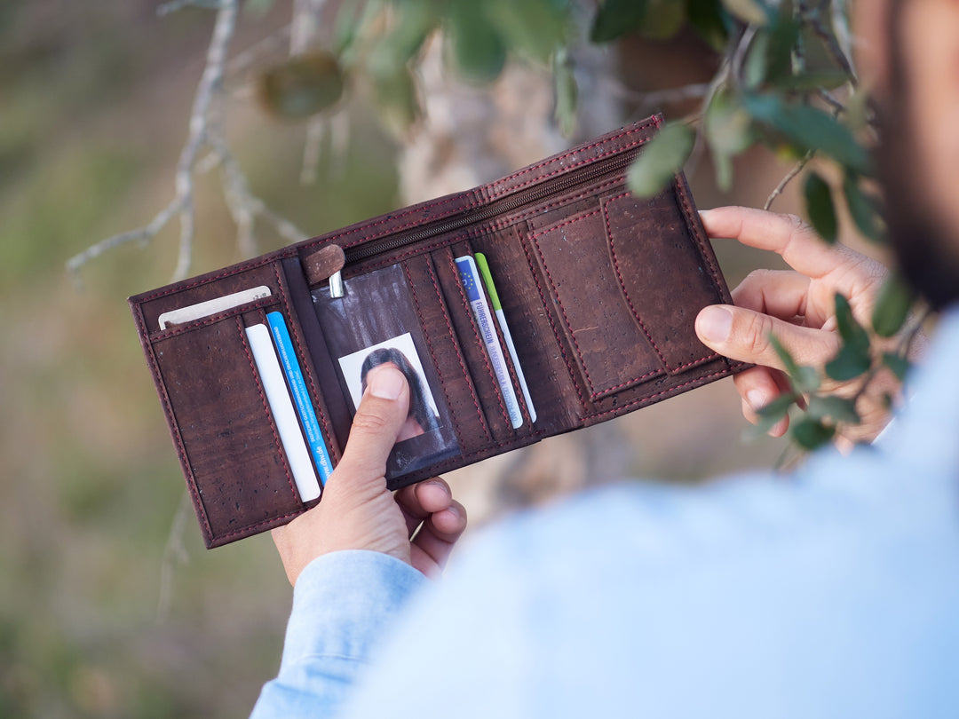 BESONDERS PFLEGELEICHT: Dank der wasserabweisenden Eigenschaft von Kork lässt sich das Portemonnaie besonders leicht reinigen. Die Geldbörse kann einfach mit einem Schwamm und Seifenwasser abgewischt werden.