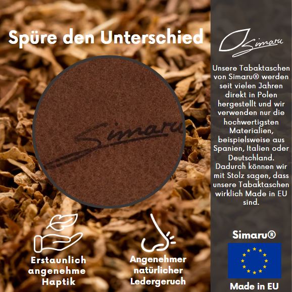 NACHHALTIG UND BESONDERS LANGLEBIG: Die Tabaktaschen von Simaru zeichnen sich vor allem durch eine sehr hochwertige Verarbeitung und die Verwendung qualitativer, edler Materialien aus. Diese Kombination macht unsere Drehertaschen besonders belastbar und langlebig.