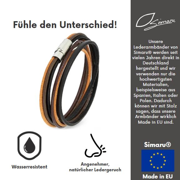 DEUTSCHE SPITZENQUALITÄT, DIE DU SPÜREN KANNST: Das Simaru-Wickelarmband wird vollständig in Deutschland aus hochwertigen Materialien produziert. Robust und zugleich angenehm zu tragen, wirst du von der Qualität begeistert sein!